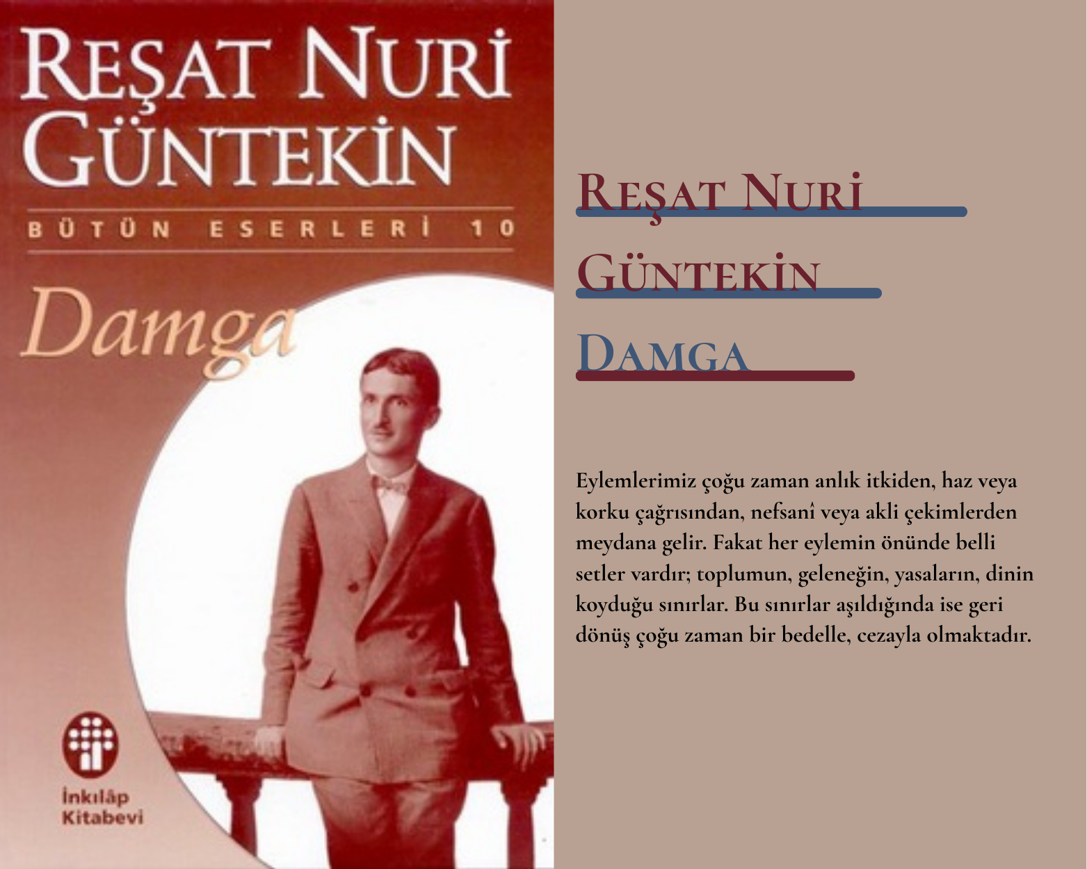 Burası bir kitap ve bu kitap Reşat Nuri Güntekin’in Damga romanı. Çünkü bir insanın bir ömür boyu damgalanması, adalet arayışı her devrin hikâyesidir.