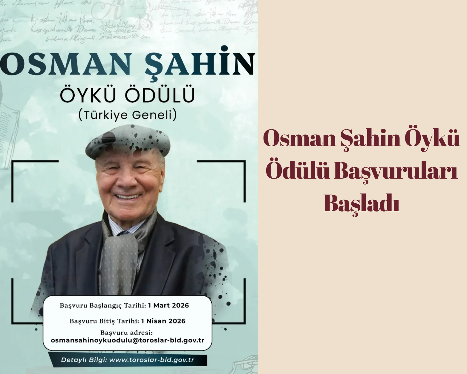 Osman Şahin Öykü ödülü başvuruları başladı. Başvuru için son tarih 1 Nisan 2026.
