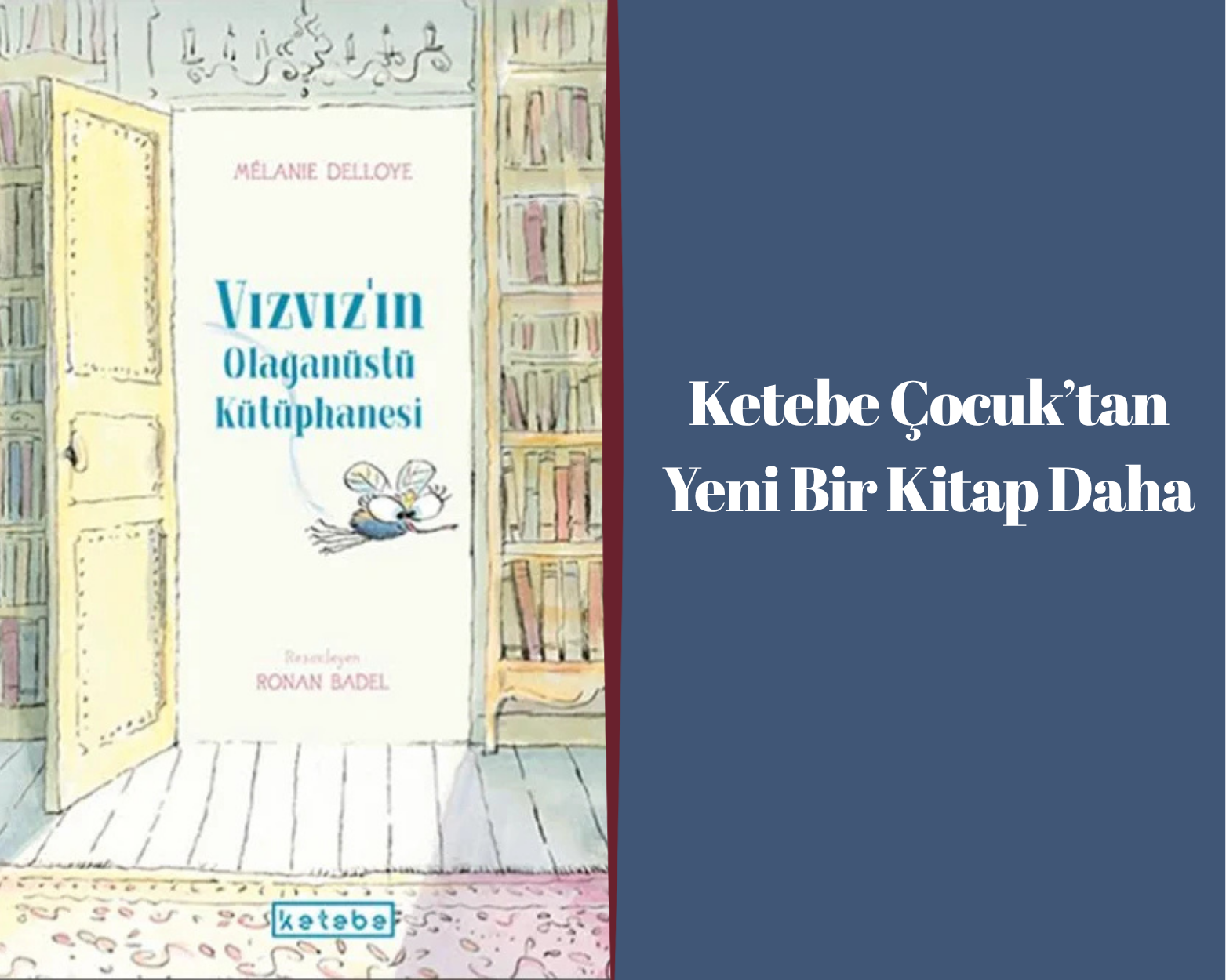 Mélanie Delloye’nin yazdığı, Ronan Badel’in resimlediği Vızvız’ın Olağanüstü Kütüphanesi, Elif Yılmaz çevirisi ve Ketebe Çocuk Yayınları etiketiyle raflarda yerini aldı.